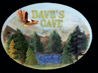 here. I mentioned that I wanted to make one for her husband Dave, as he would now have a man cave. It was a lot of fun adding paints and distress ink and even stickles and glossy accents to the original wood plaque that I bought at JoAnn's.! I was invited to Dave and Charlene's this past Wednesday and got to give Dave his plaque in person! I think that Dave liked his plaque!